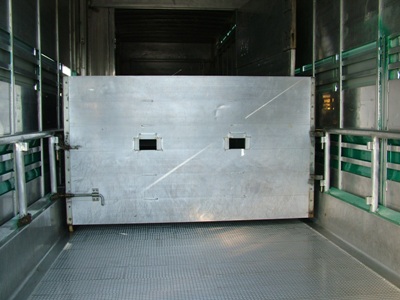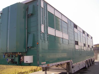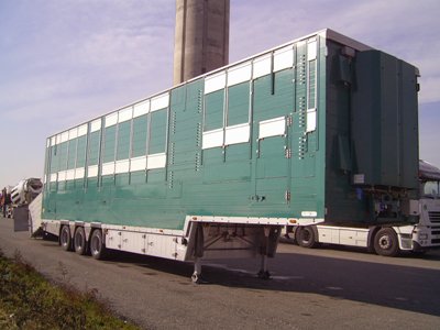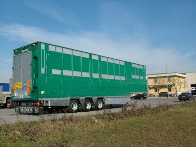 Naczepa Pezzaioli do przewozu żywca wołowego.
